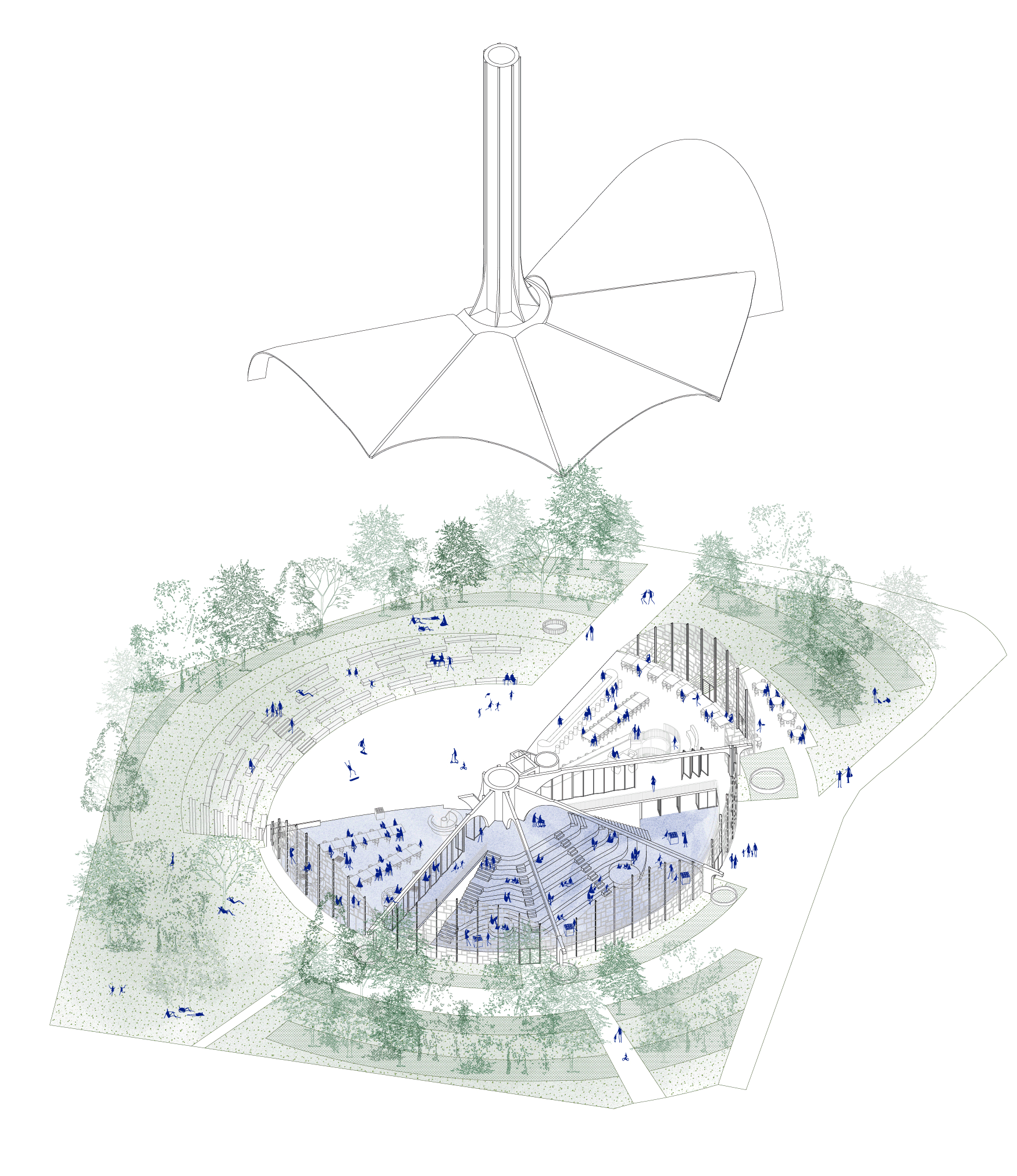 This landscape network follows the topography to connect existing neighborhoods, facilities, and open spaces. It extends the urban renewal strategy already underway and creates common ground across the territory. Through its position, the Chaufferie becomes a point of balance and convergence, both a landmark in the wider landscape and a place of proximity for residents.